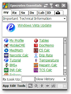 Here are a couple screenshots of how the information looks on a mobile PDA phone. You can customize the formularies you need to research from an account page on the web. Also, when an account is set up with a PDA, you also have access to the same information from a desktop PC. There is spot for CME credit as well. The screenshots here show all the "free" information that is available with setting up an account. You can also purchase additional information to be downloaded to the device. BD