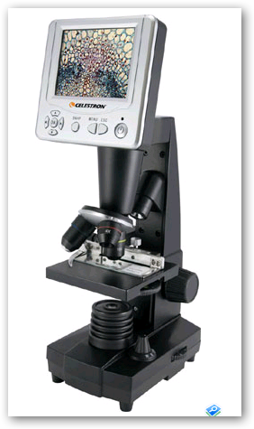 option to consider from Celestron, which is set to debut its new LCD digital microscope at CES. Up front and center on this one, as you can see, is a relatively large 3.5-inch LCD, which gets paired with a 2 megapixel digital camera and, of course, a microscope that'll let you take a peek at things at magnification levels up to 40x.