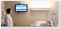 The computer system presents other information, including reminders to patients to ask for help in getting out of bed if they are at risk for falls. And a spotlight focuses on