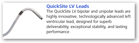 The QuickFlex leads, used in CRT (cardiac resynchronization therapy), feature shorter tip and ring electrodes (used to conduct energy), reducing the length of the lead's rigid portions. The concept behind the shorter electrodes is that it may help the lead through bends in the heart's venous system that characterize the left side of the heart. This could enable physicians to better maneuver the lead to the optimal position for therapy.