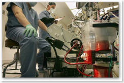 A heart-lung machine holds a reservoir of blood during heart surgery at Fountain Valley Regional Hospital and Medical Center. Some ‘bloodless’ techniques are quite simple, such as collecting smaller-than-usual samples for testing.ms employ a variety of techniques to minimize blood loss before, during and after treatments for many illnesses -- all in the hopes of avoiding the need for transfusions. Some are extraordinarily simple, such as collecting smaller-than-usual samples of blood for testing. Others involve the use of innovative medications, such as the hormone erythropoietin, which stimulates the bone marrow to produce red blood cells.In the operating room, physicians use sophisticated surgical instruments such as a harmonic scalpel, which simultaneously cuts tissues and stops bleeding, and pay meticulous attention to surgical technique. They also use special surgical sealants and glues to control minor bleeding, and drugs such as tranexamic acid to help blood clot normally. Blood that is spilled during surgery often is collected, cleaned and returned to the patient using high-tech systems.