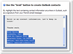 Like many others, I have joined the network, but I am slow to add folks as of yet...but the best part of this whole LinkedIn site is the add on for Outlook...even if you have not used the features of connecting with others, the toolbar has one great feature, copy and paste text from any email and create a contact....if nothing else is used here, this one feature along makes it worth while. It sure beats the heck out of typing each individual contact in Outlook. Very simple, highlight the text and use the "grab" button on the toolbar. You can also link your Outlook contacts but that is one more feature I have not used.