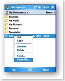 In the Calendar, Contacts, Notes, Tasks, and Pictures programs, you can beam files and information to other devices using Bluetooth or infrared. From the program, select the item you want to beam. In Calendar, first open the appointment in Agenda view.