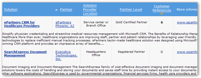 Microsoft has created a new site whereby potential clients can locate a health care partner by searching the site. There is still a bit more work to be done to provide a complete search in all health care verticals and partner solution areas. I did a quick search for medical records and the search results are returned as shown in the last image. You can filter the search to be as detailed as desired. This appears to be a potential good spot to begin to locate Microsoft Partners using Microsoft technologies. The page is very similar to the software marketplace for software vendors they have had in place for a few years, but this site focuses on MS Partners only with customer rankings. BD