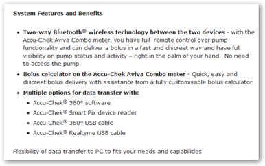 About the Accu-Chek Combo system:In addition to being discreet and easy-to-use, the Accu-Chek Combo system also features: