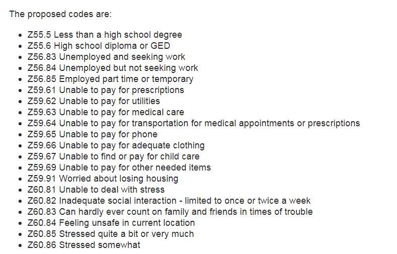 So get a load of this nonsense on how the AMA and United Healthcare want to code you, so they can use the result sin run you through a ton of other data bases to deny or allow access. That’s what this is all about if you haven’t figured it out yet. You should also know that once you get coded or tagged with this nonsense coding and US caste system type of scores, that it never comes off. You will be stuck with one of these balls and chains forever, so hey WTF, let’s score everyone with Z60.82 for Inadequate social interactions. This is such a piss poor model that I bet even the Quants that created it must be cringing, you know they don’t have to like or believe all the crap their employers want them to do but they have families to feed.