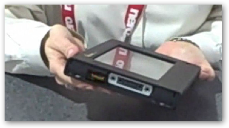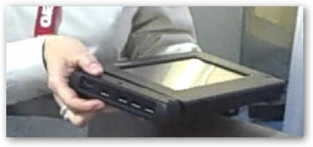 Nice video and review of the new products...the first picture shows the sides and each side has a plug in facility to add the modules for the i7300 UMPC from TabletKiosk...neat...one of the modules is an additional 4 cell battery...clips on the side like the rest of the modules...this means a lot more battery life on the UMPC....and on the bottom you can also switch out the standard 2 cell battery for a 4 cell, so add both of these