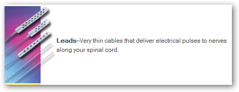 For spinal cord stimulation (SCS) to control your pain, you must have a small system placed in your body. An SCS system looks and works a lot like a pacemaker. In fact, SCS systems are sometimes called “pacemakers for pain.” An SCS system generates mild electrical pulses and sends them to your spinal cord. These electrical pulses replace the feeling of pain with a tingling or massaging sensation.